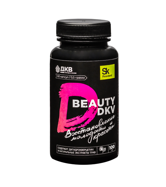 биологически активное вещество - дигидрокверцетин (ДКВ) 100 мг, элеутерококка экстракт сухой 100 мг; вспомогательные компоненты - МКЦ 195 мг, стеарат кальция 2,5 мг, кремния диоксид коллоидный 2,5 мг, капсулы желатиновые